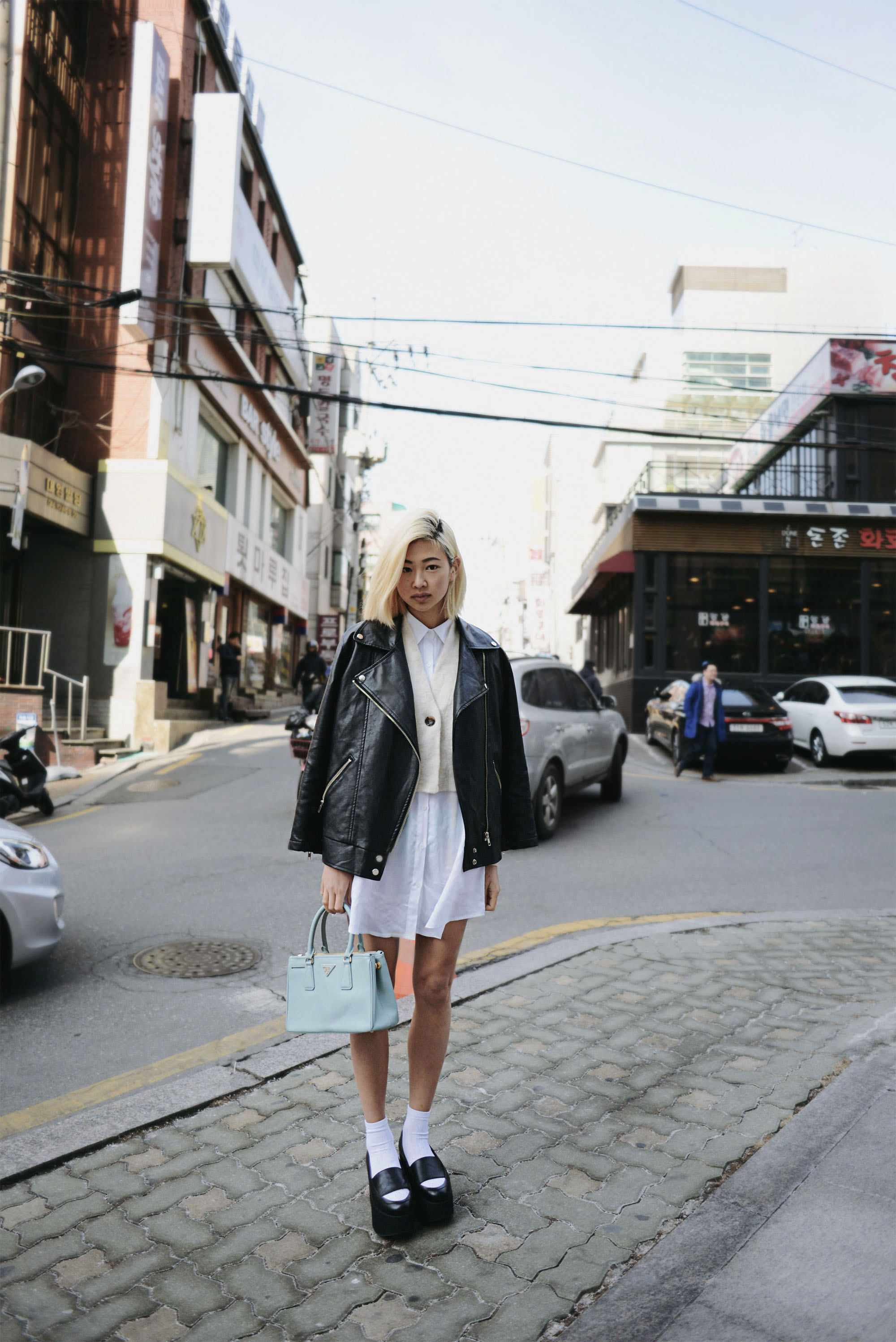 Start in deep lunge, left hand forward, right hand flat on floor, left arm extended behind you at left side. Step left leg back into single-arm plank, then step left leg forward, pressing off left foot to stand and kick right leg forward, elbows bent 90 degrees, hands in fists in front of face (as shown). Tap right toe to floor, then step back to start. Continue for 15 seconds. Switch sides, repeat. Works: Shoulders, abs, butt, legs